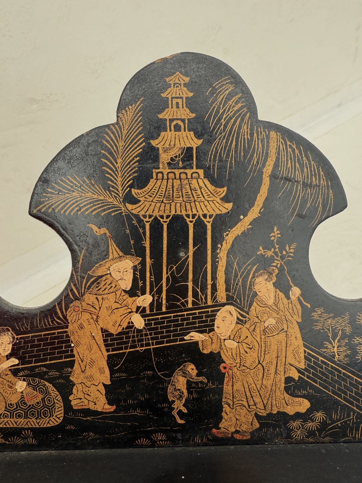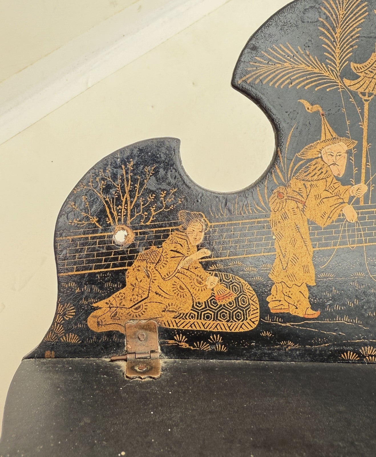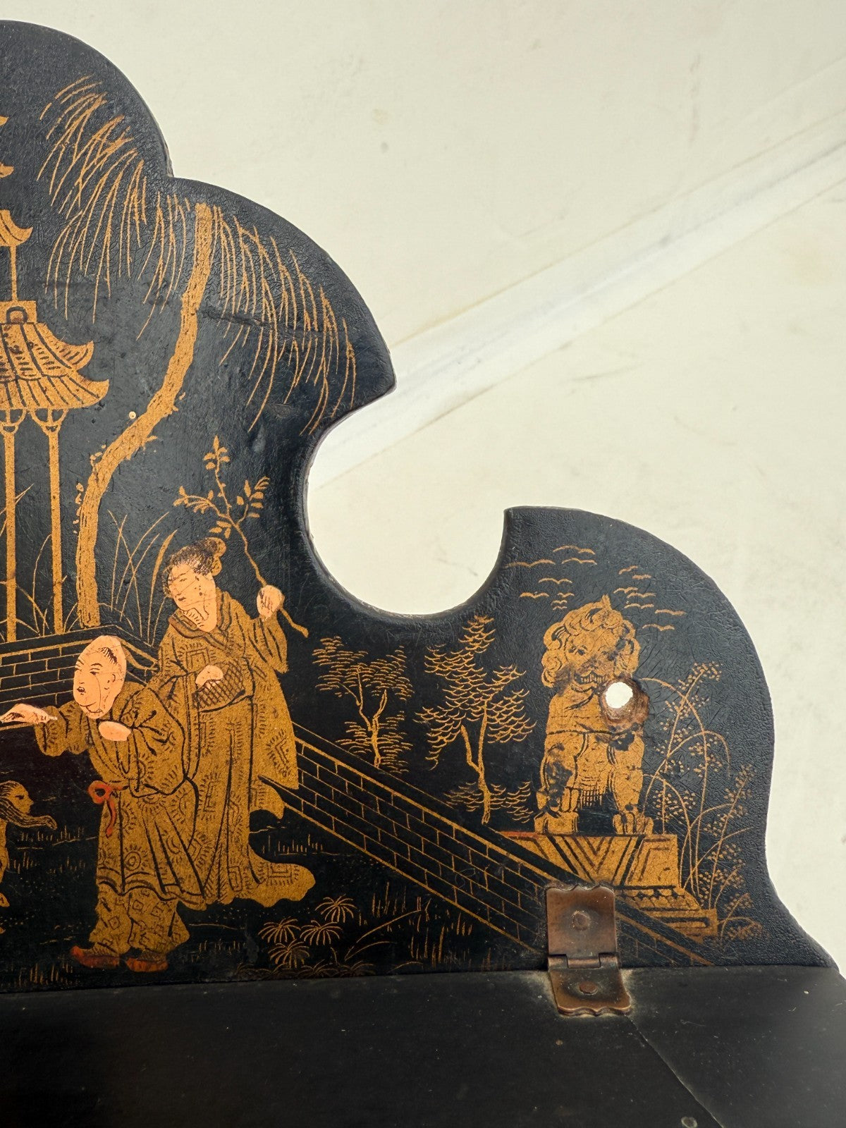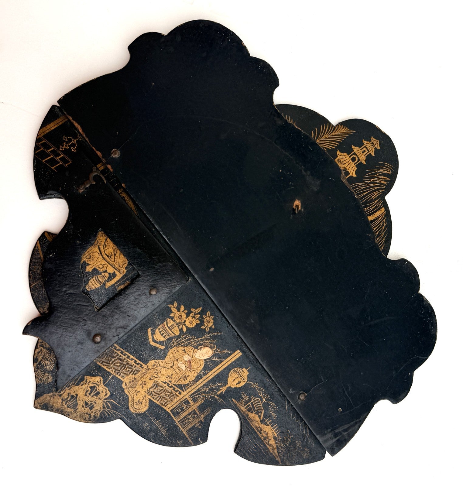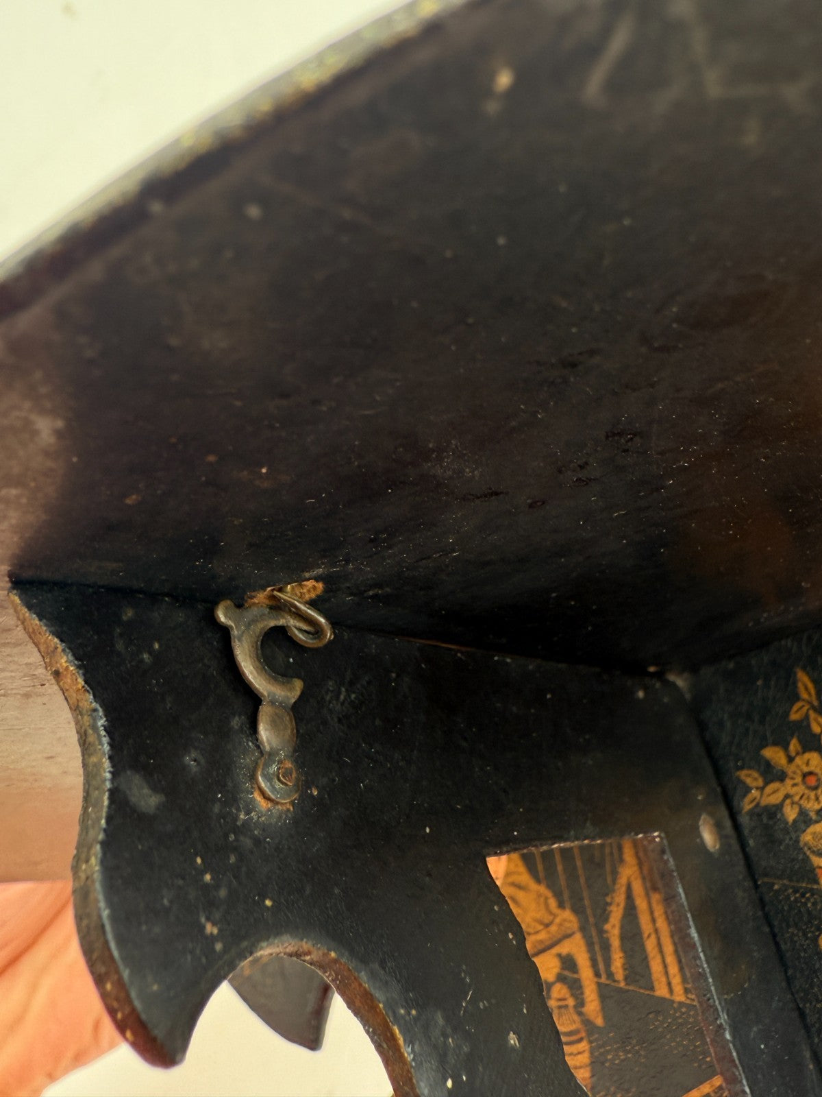 19th C. Japanese Chinoiserie Black & Gold Lacquerware Folding Wall Shelf