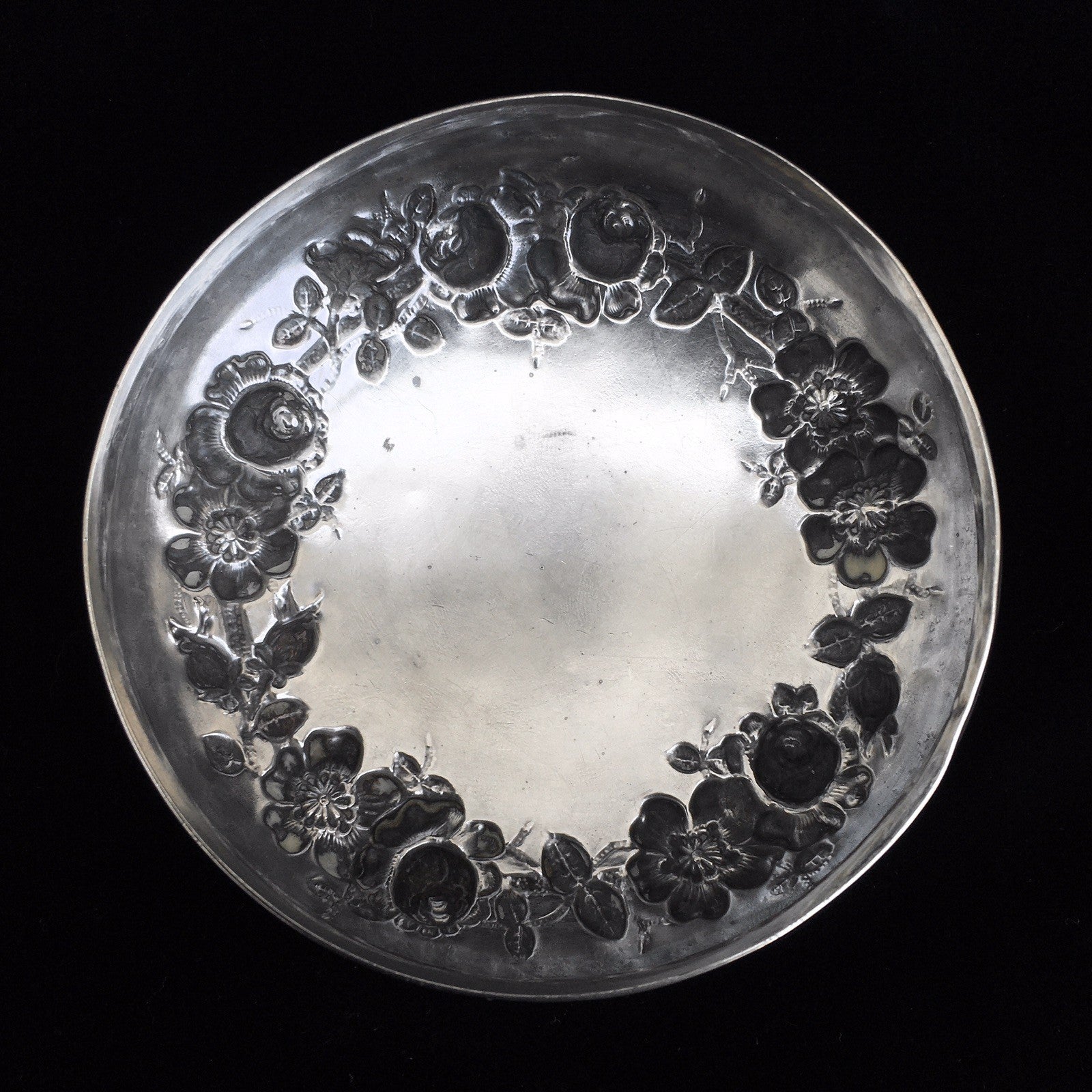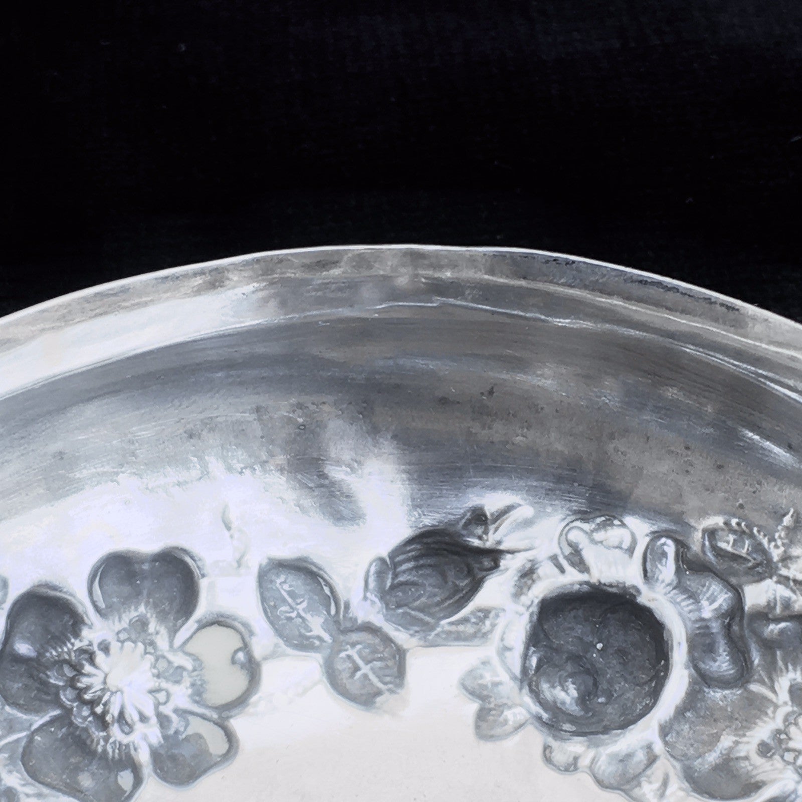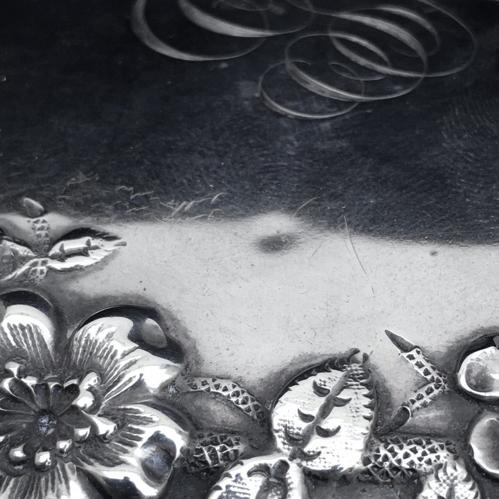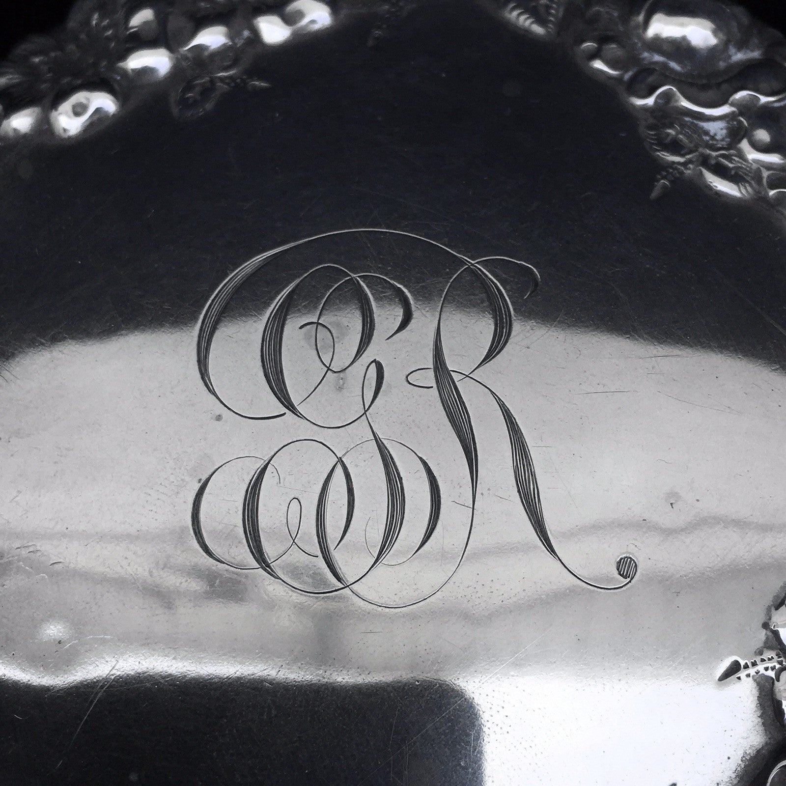The monogramed Silver lid has a beautiful floral Repousse designed border.