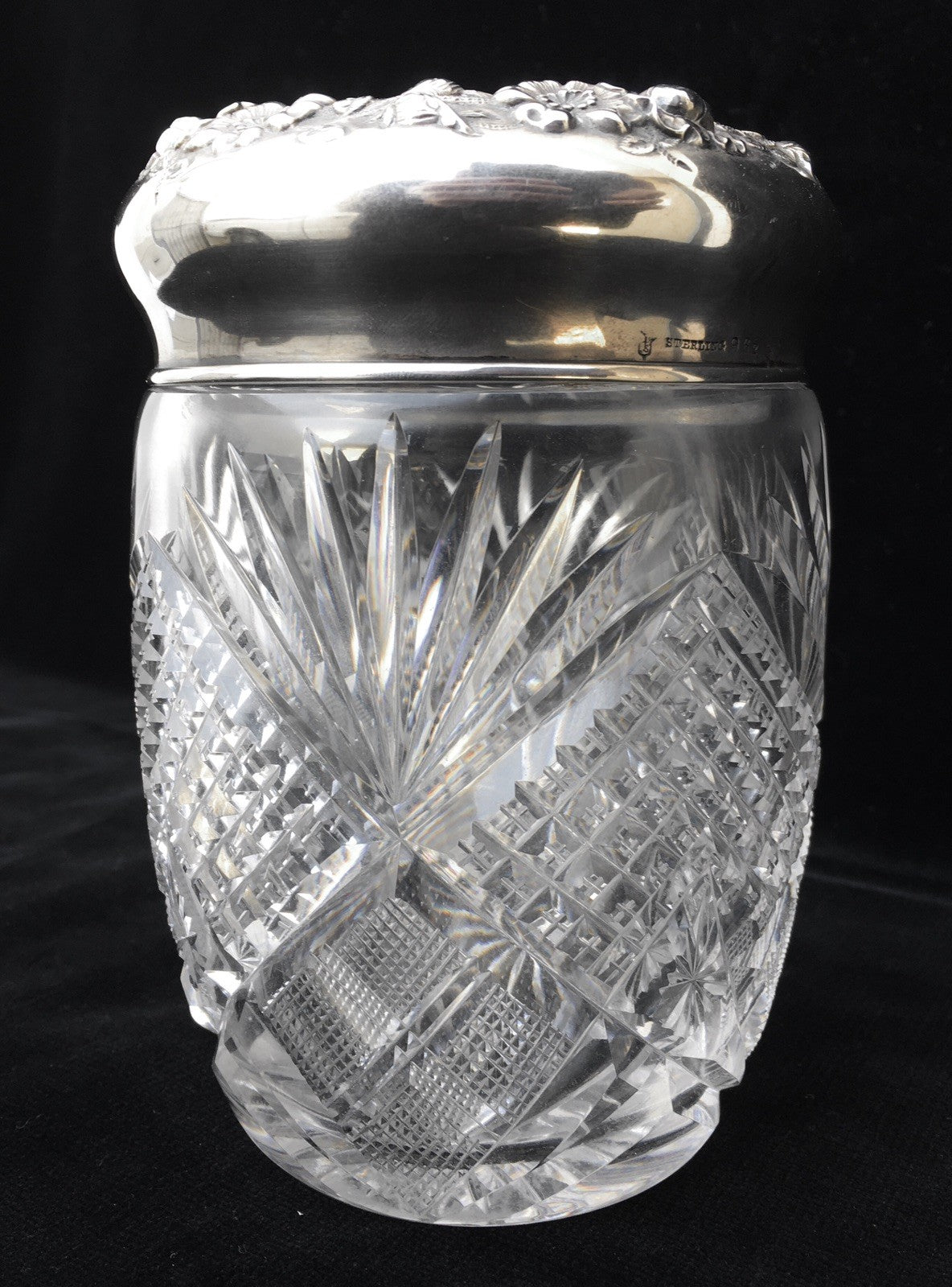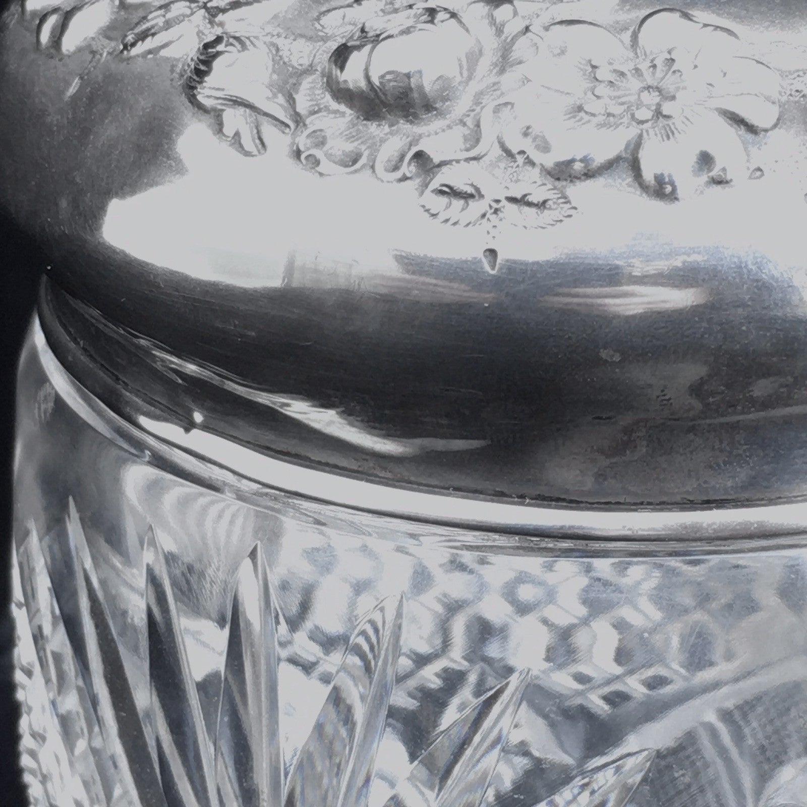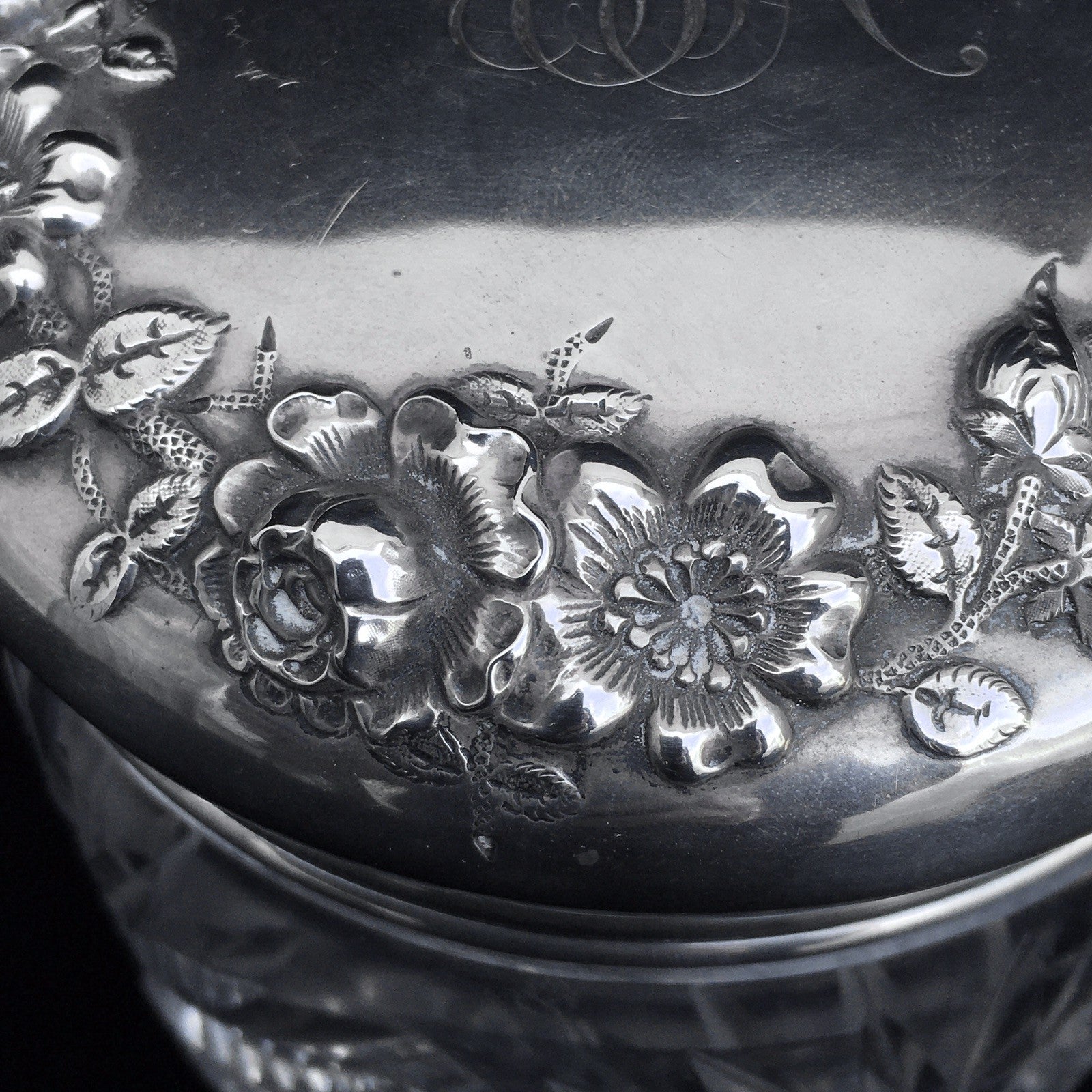 c. 1880 American Brilliant Period Tobacco Jar with Repousse Sterling Silver Lid