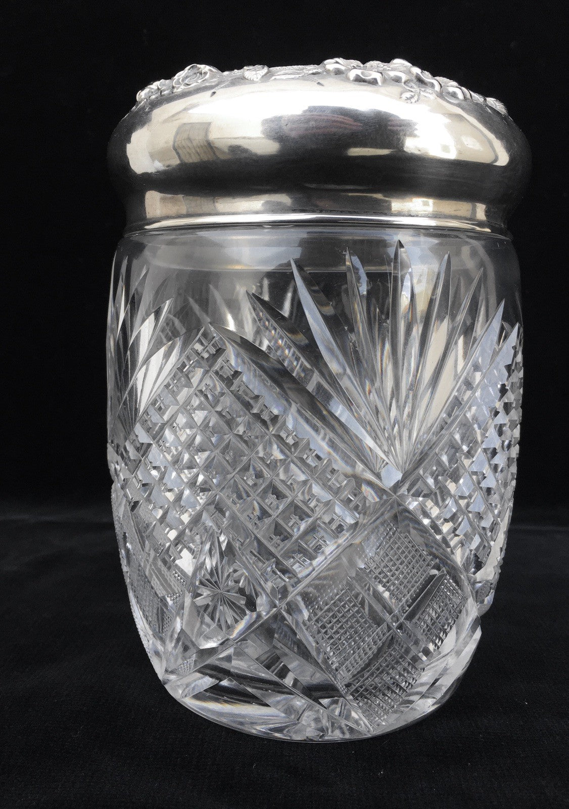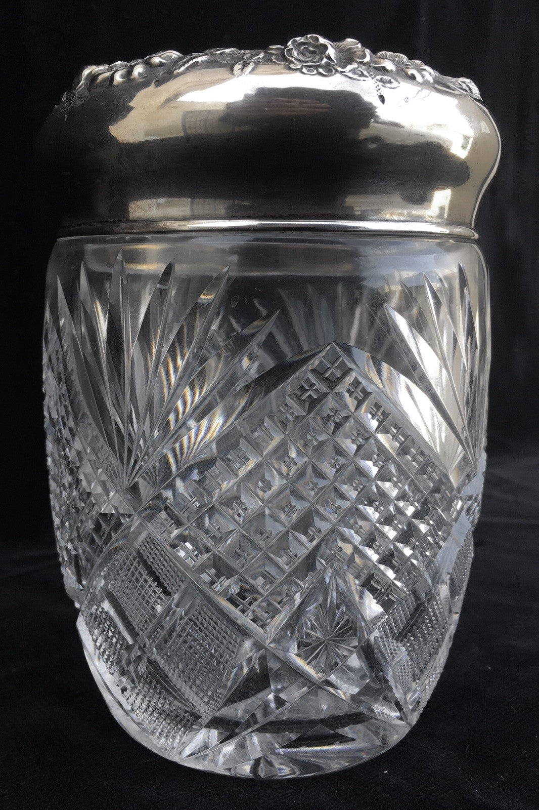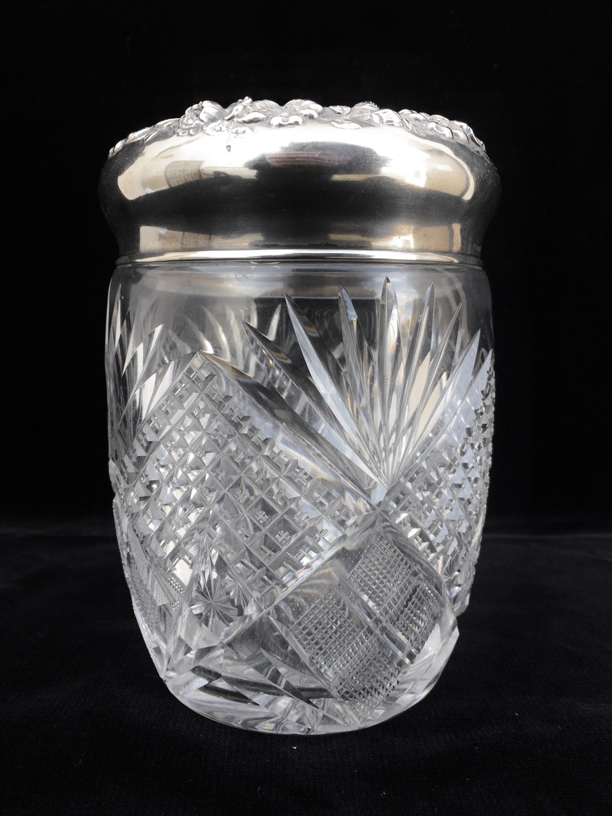 c. 1880 American Brilliant Period Tobacco Jar with Repousse Sterling Silver Lid