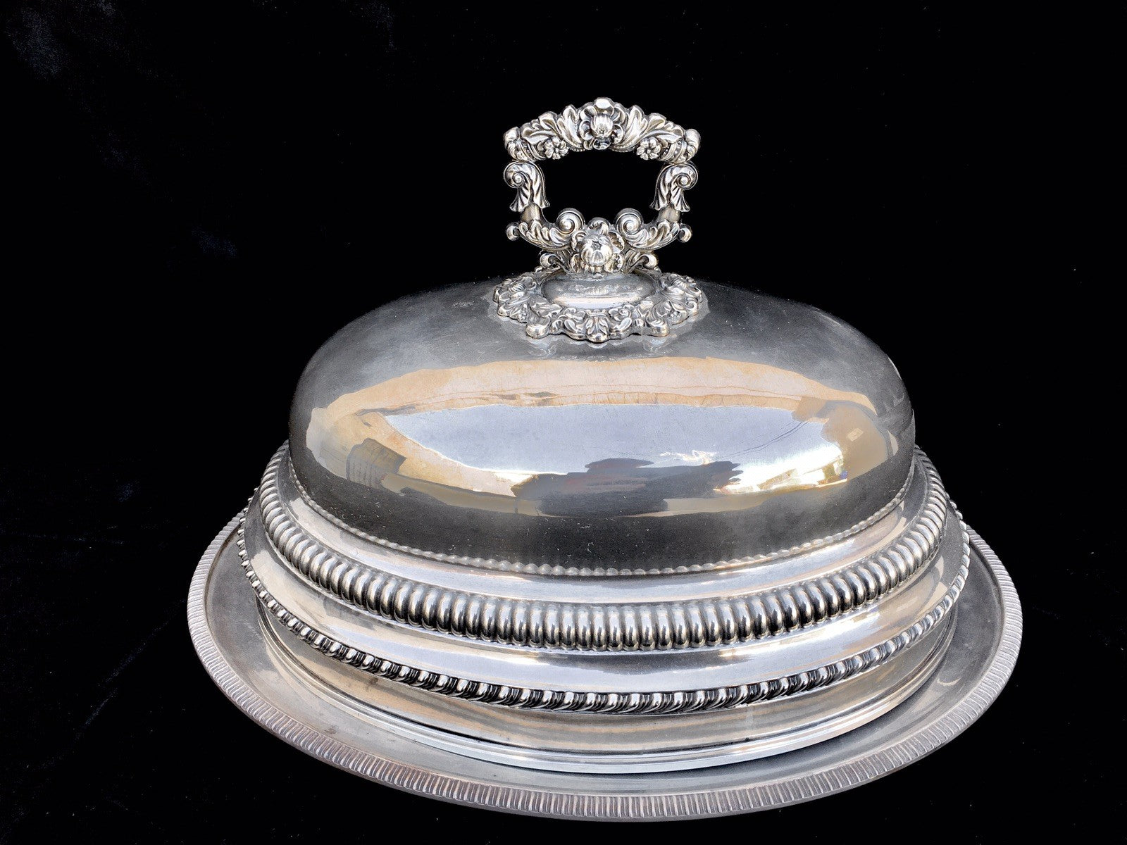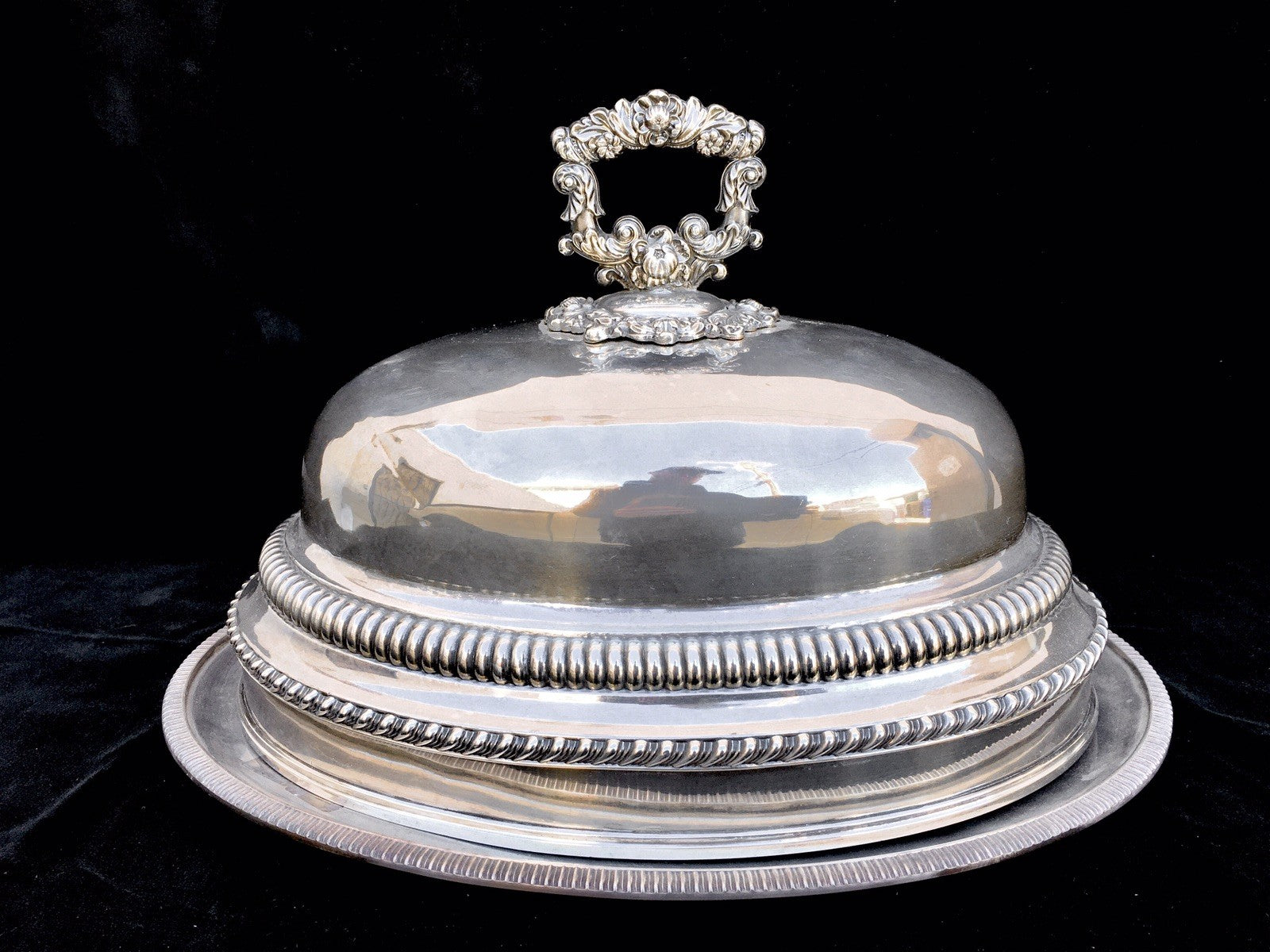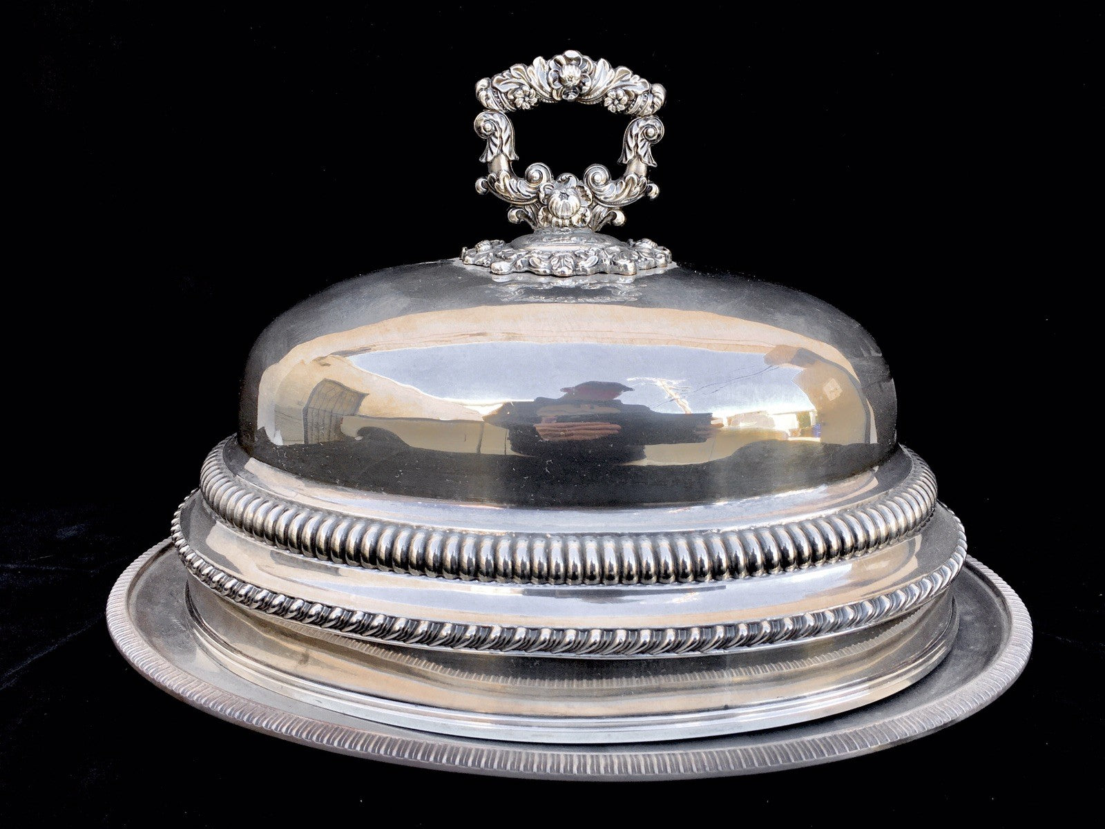 Early 1800's Sheffield Silver Plate, Hood, Serving Dish Dome, with later tray