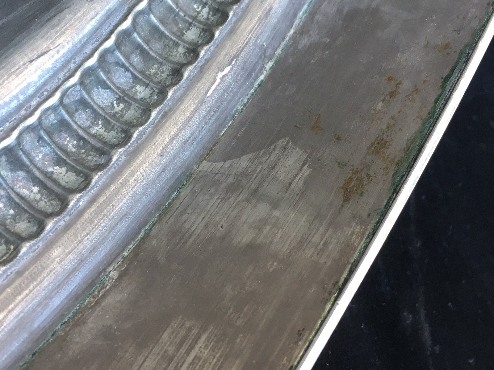 Made in the old style with the rolled on silver plate and folded edge, and the tinned interior.