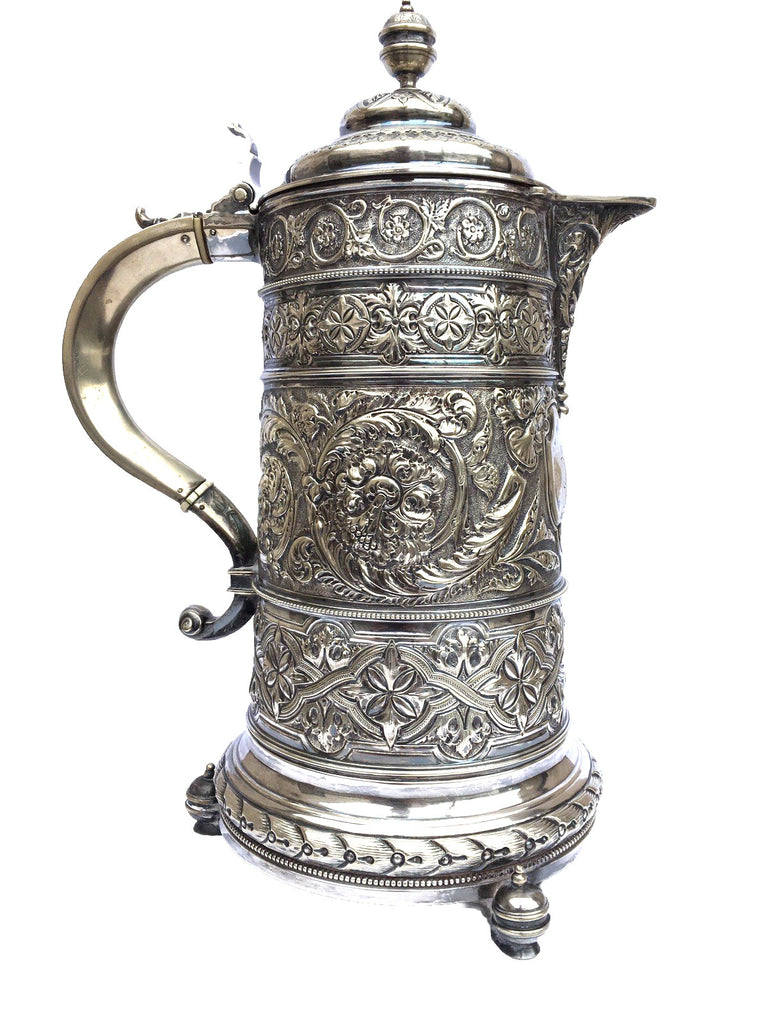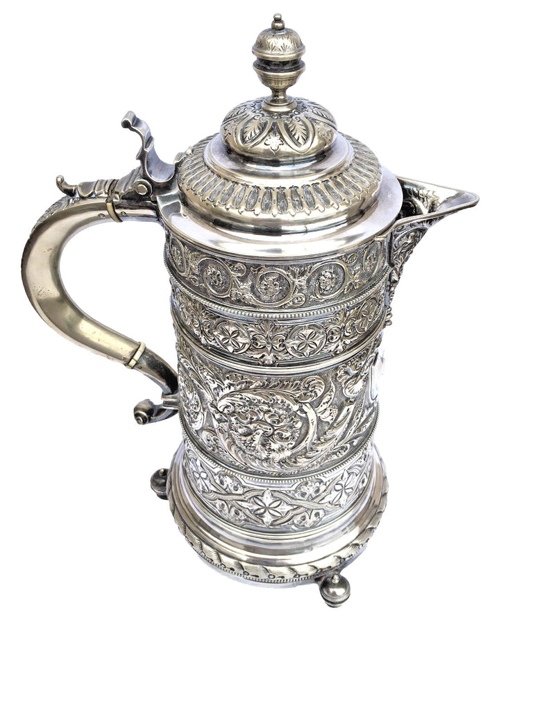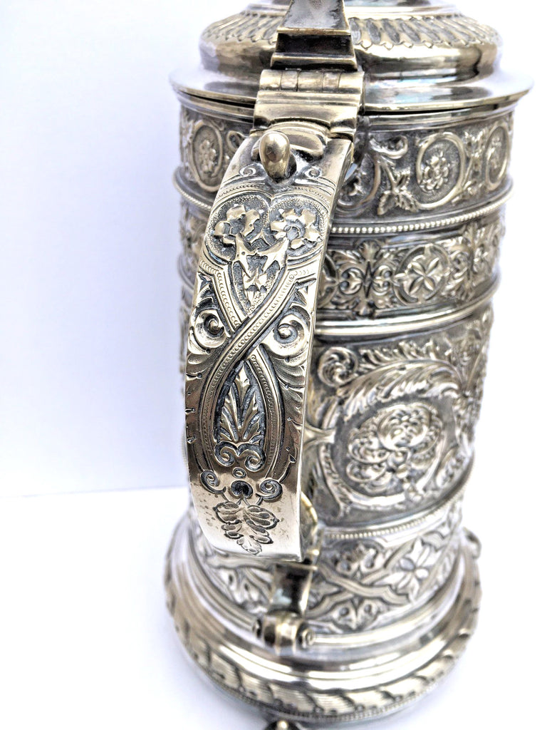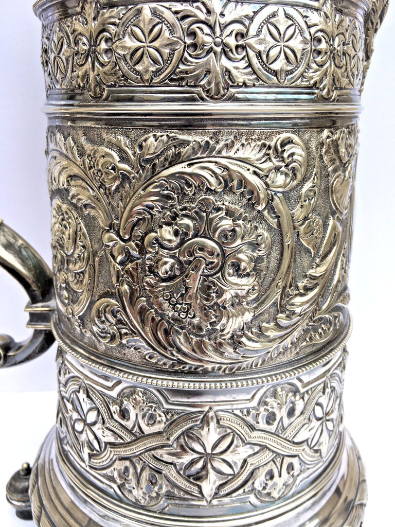 Lt. 19th C. Magnificent English Silver Plated Martin Hall & Co. Tankard / Flagon