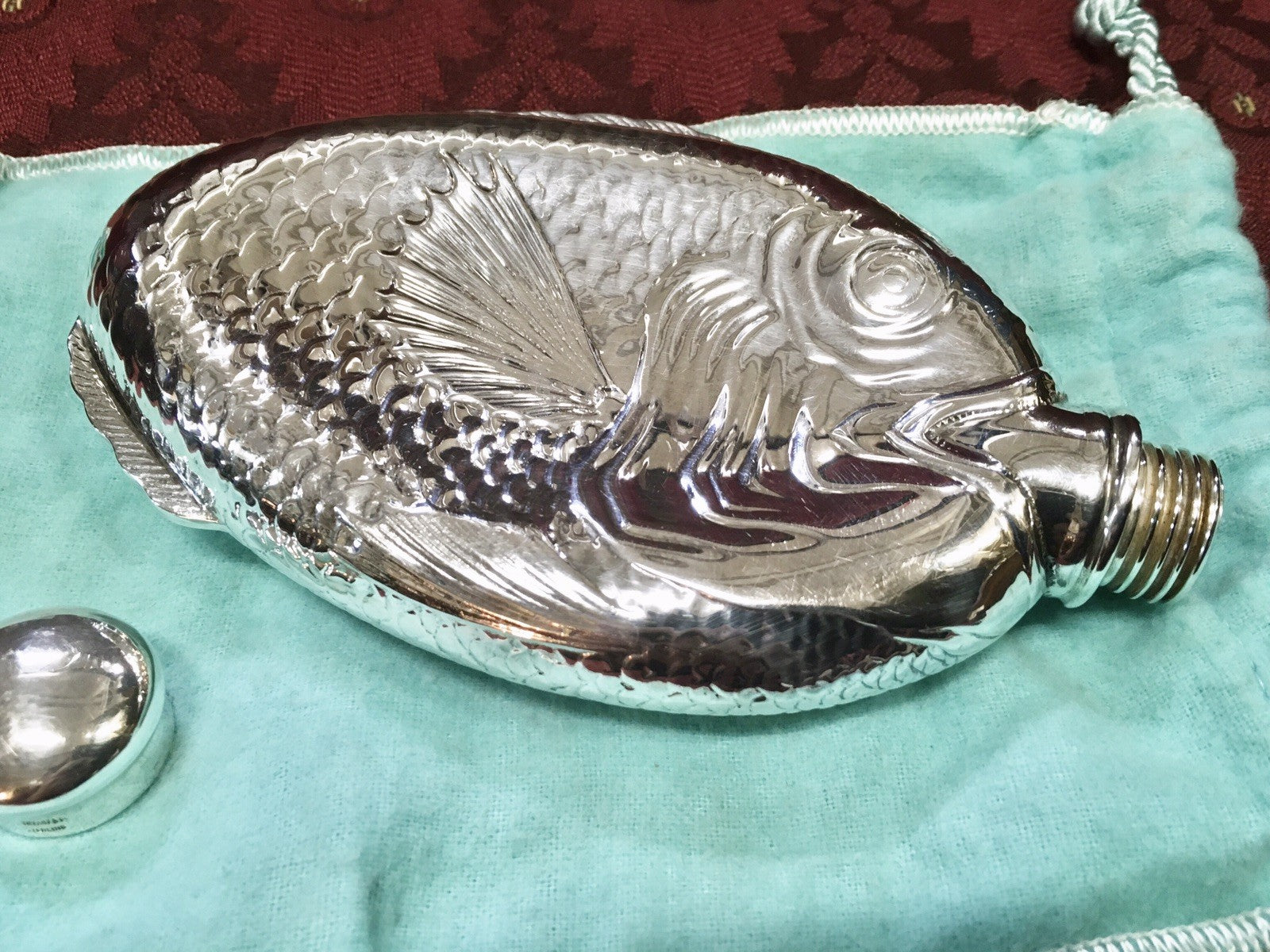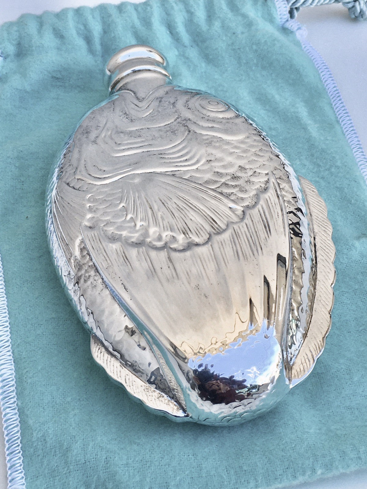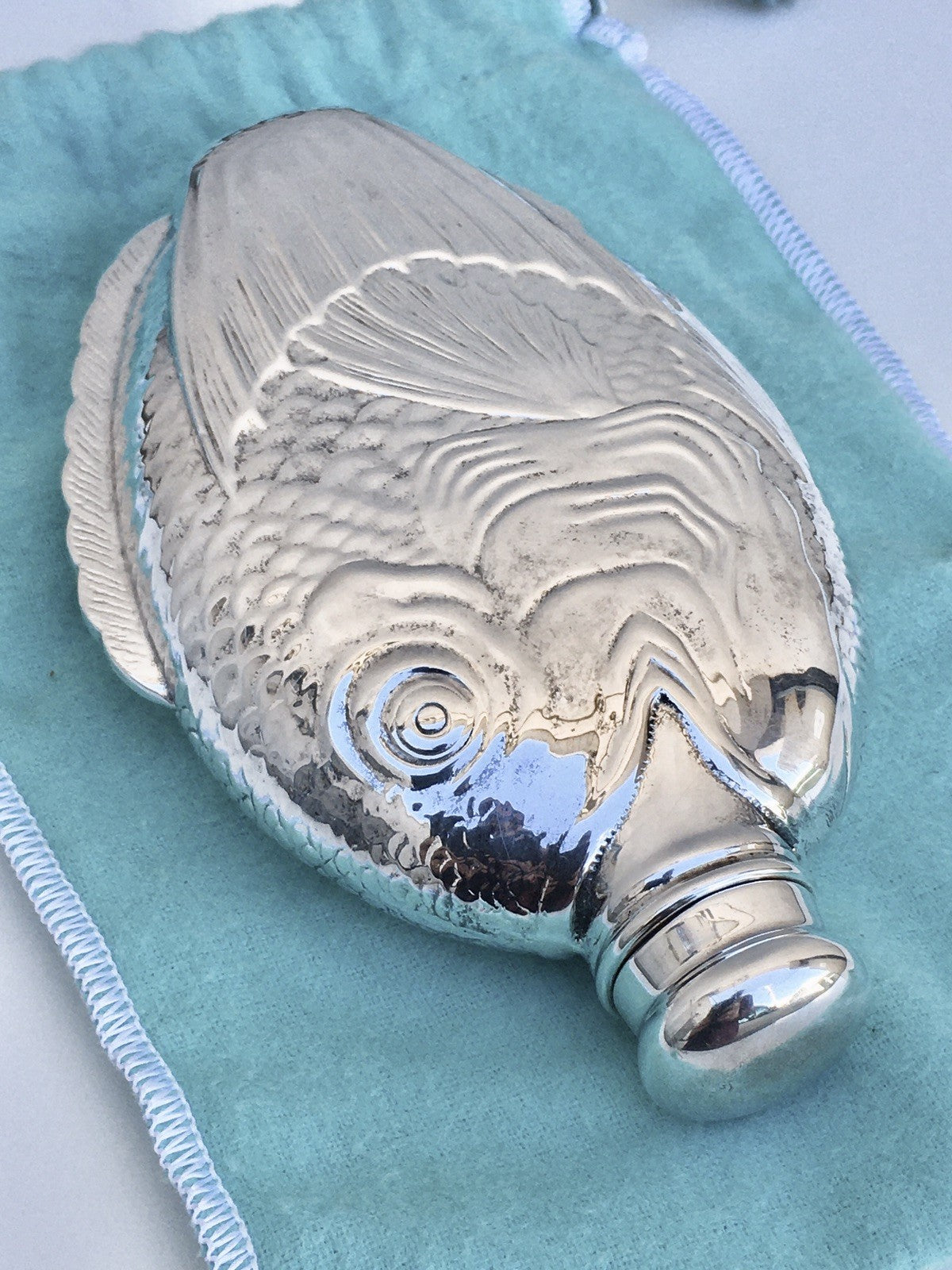 We are offering a very hard to find Tiffany & Company Sterling Silver Fish Flask
