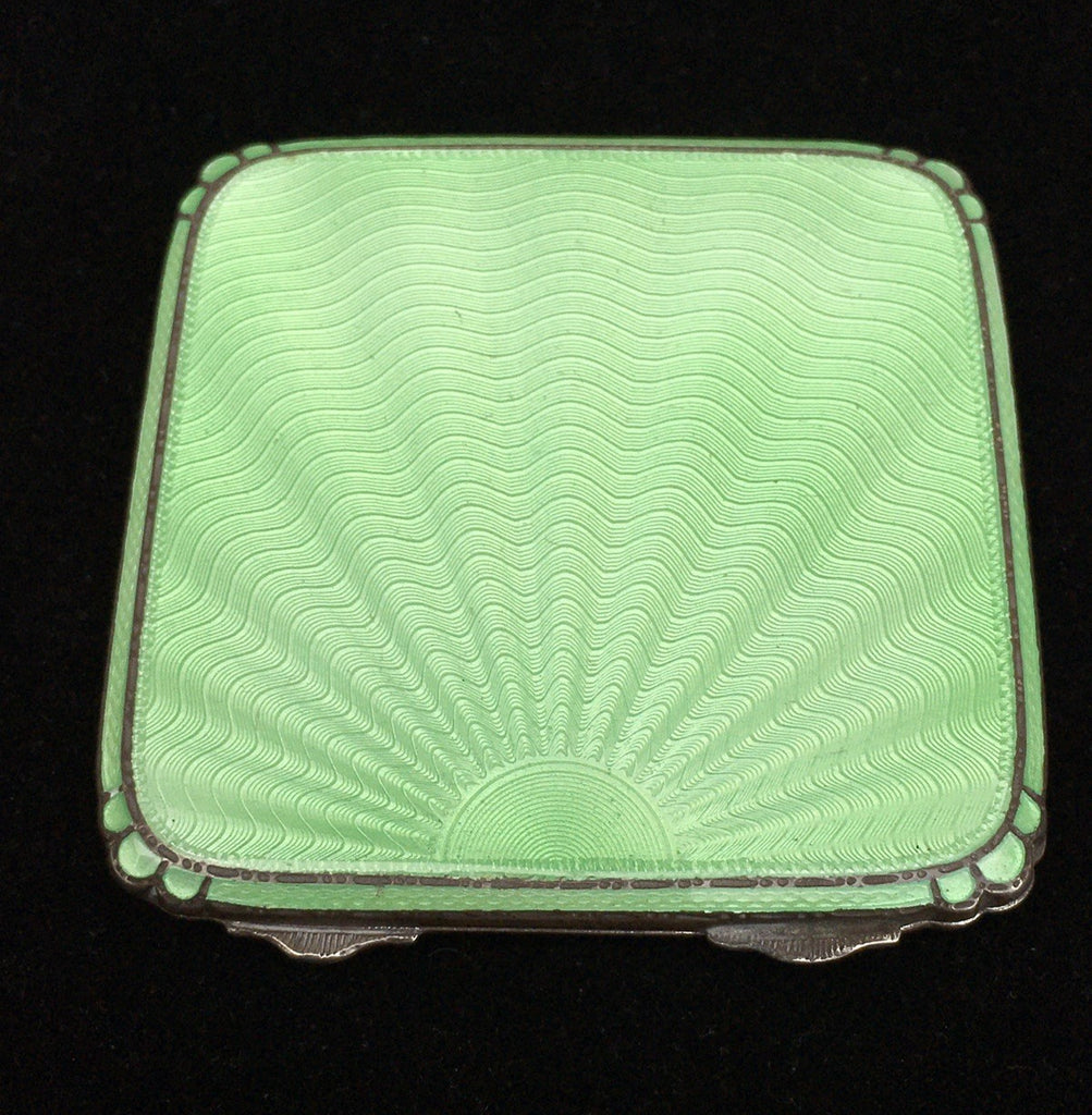Sterling Silver & Green Guilloche Art Deco Compact Goldsmiths & Silversmiths co.