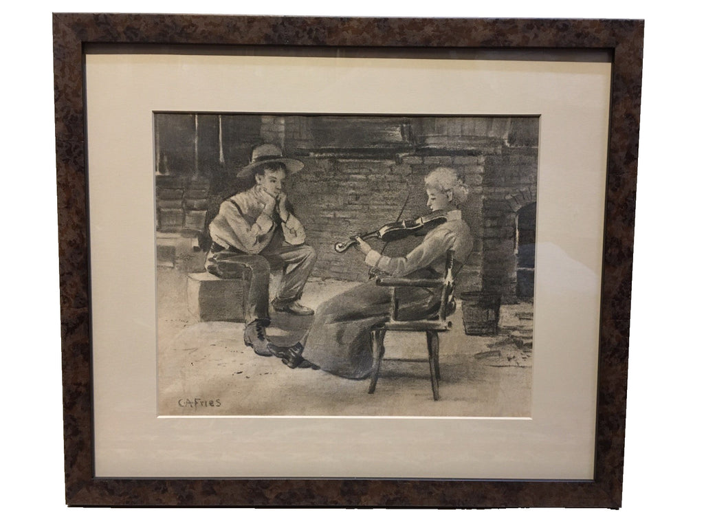 Charles Fries, signed original Charcoal Drawing, 1892, title "First Audience"