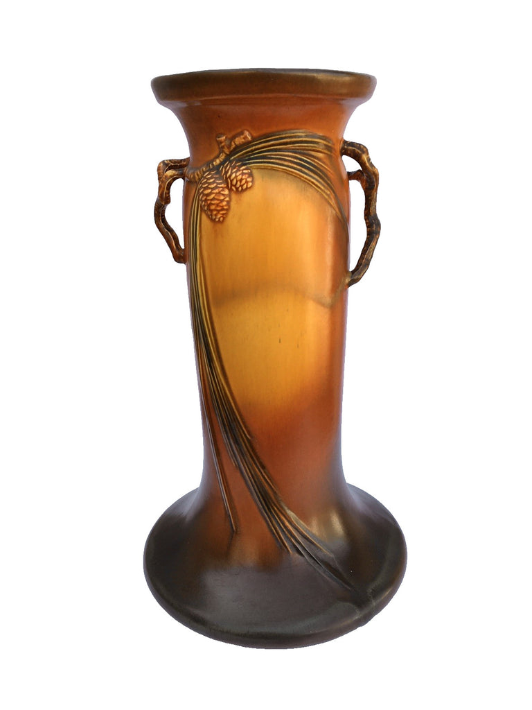 Roseville Pottery, c. 1936, Pine Cone Pedestal 632-8 fall season colors