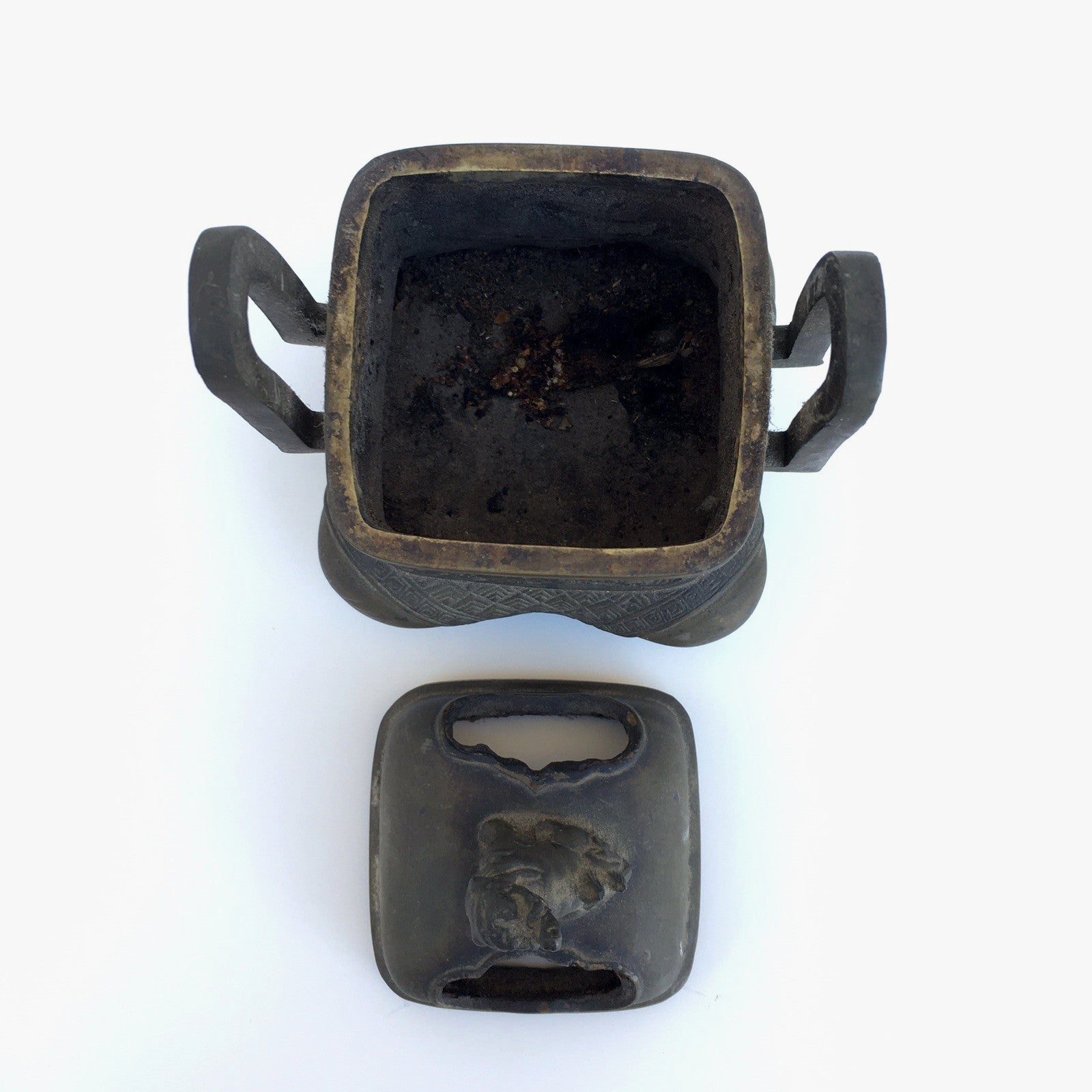 An 18th c. signed Chinese Archaic style Bronze lidded Censer/ incense burner,