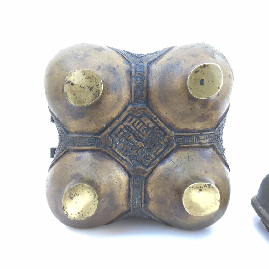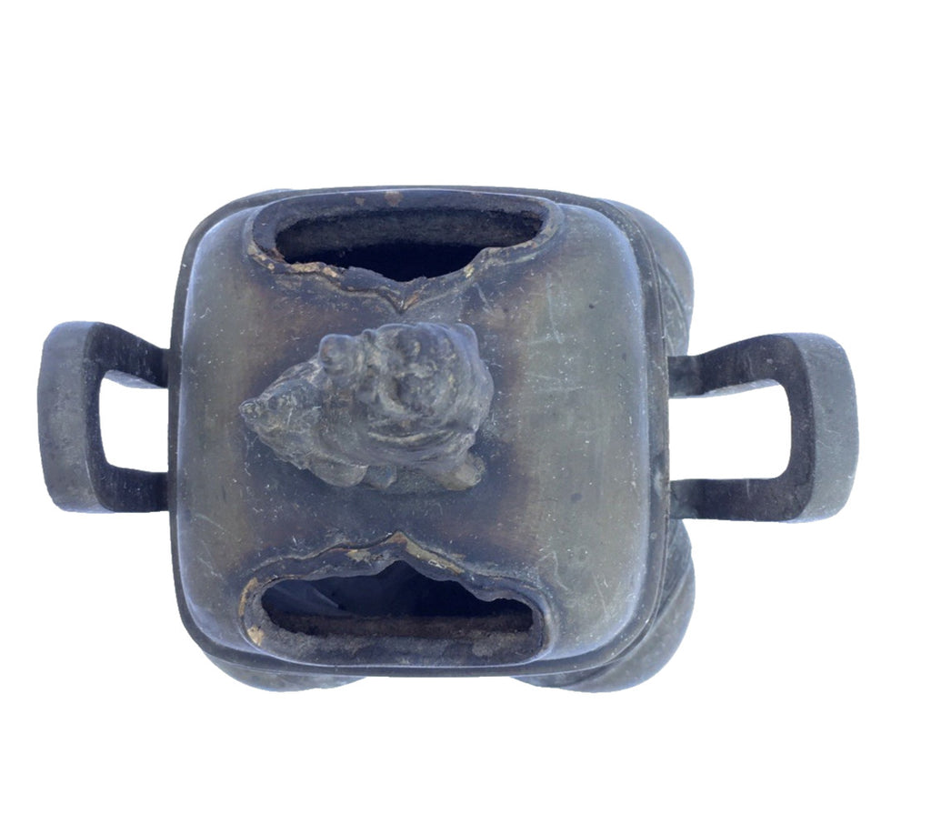 18th c Chinese Gilt Bronze Incense Censor Archaic Style signed