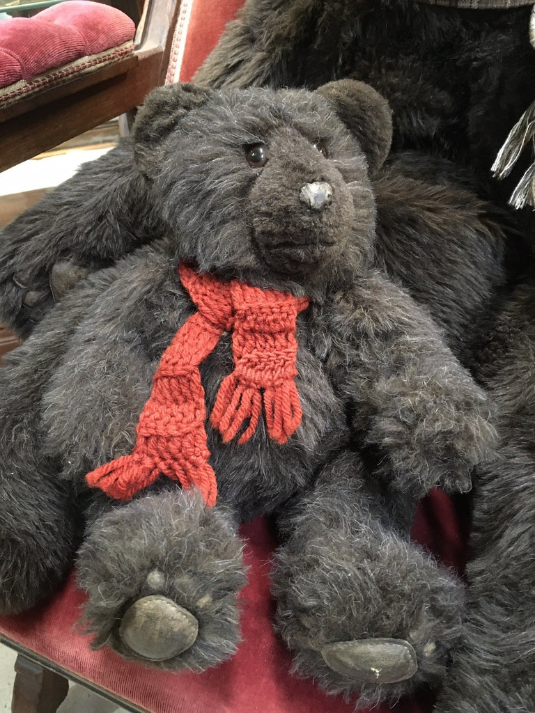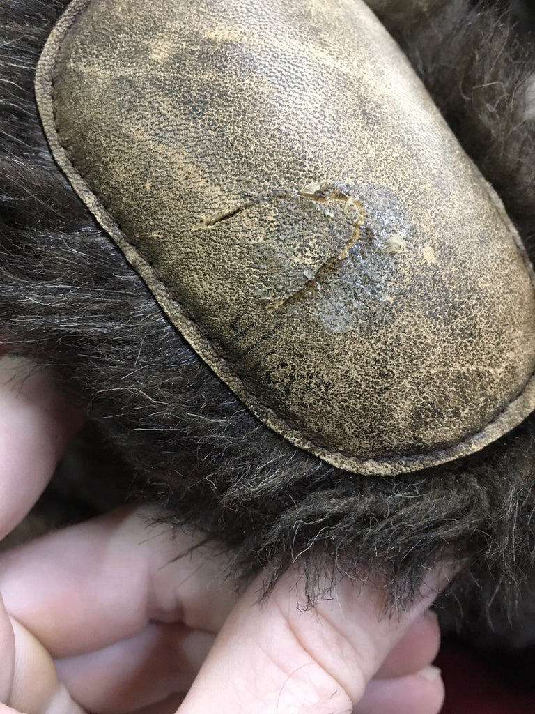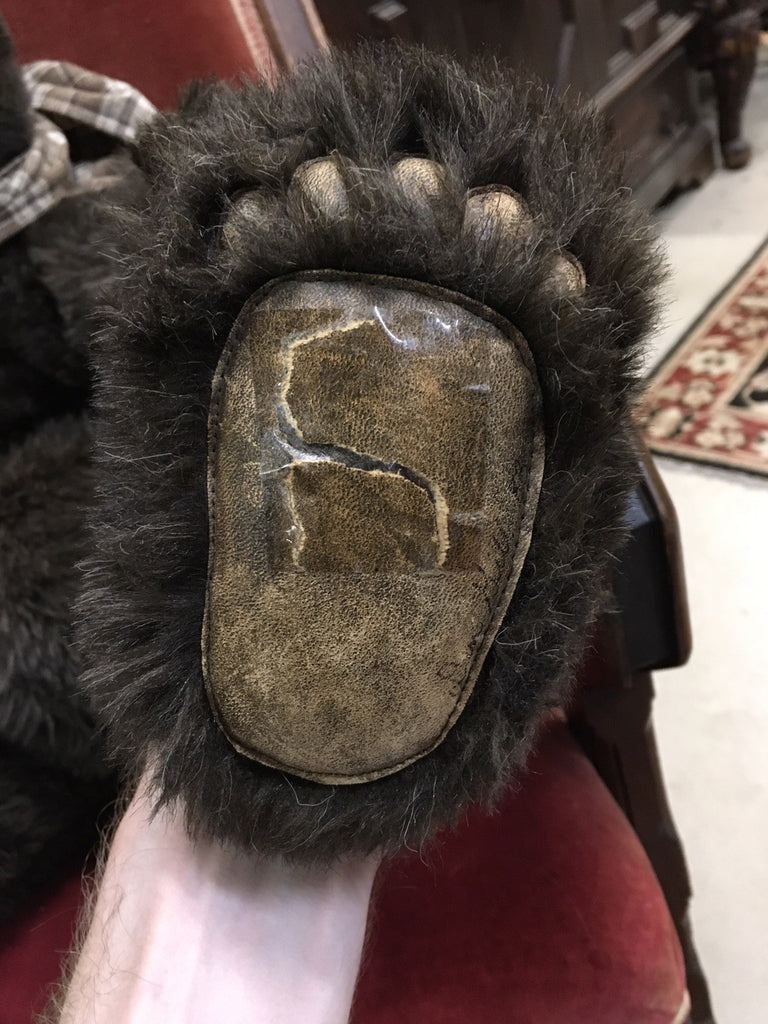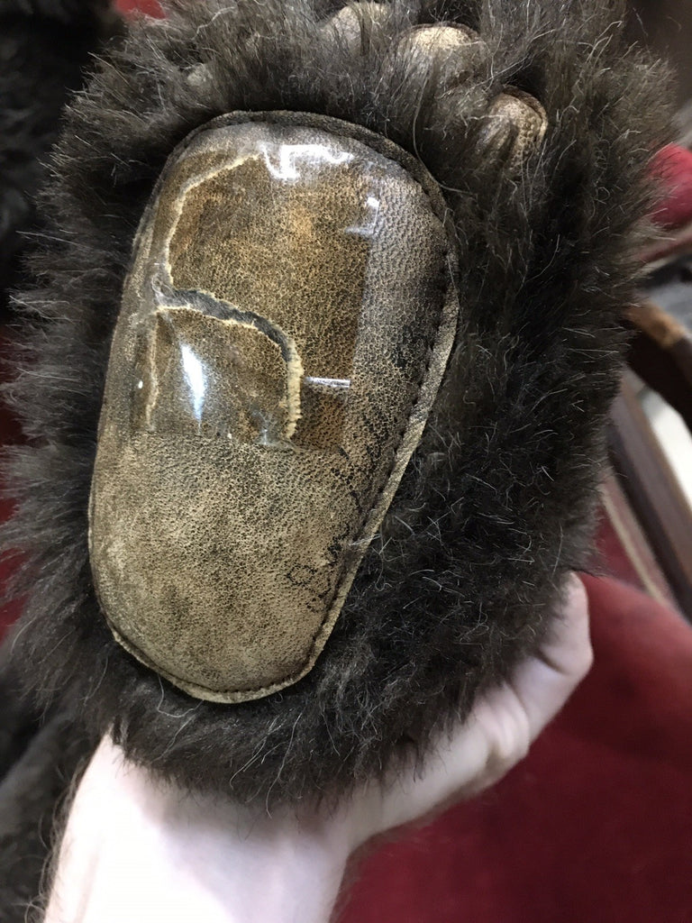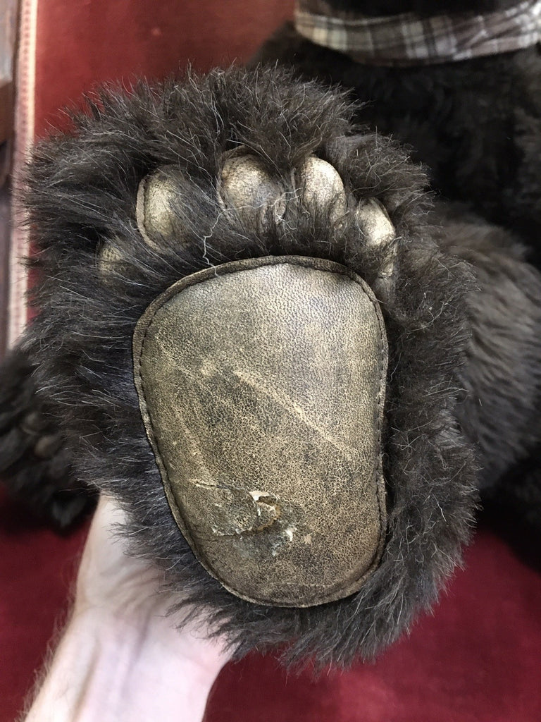 Condition: these teddy bears are in nice age related condition with a tear to the large bears left foot-paw that has been repaired with tape.