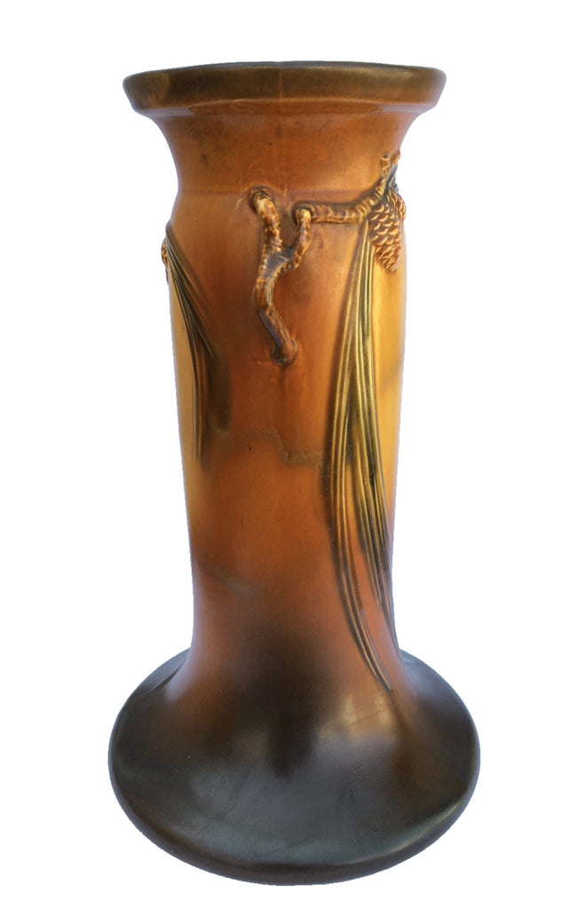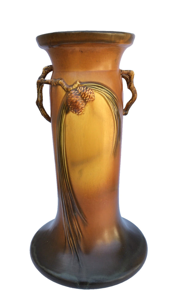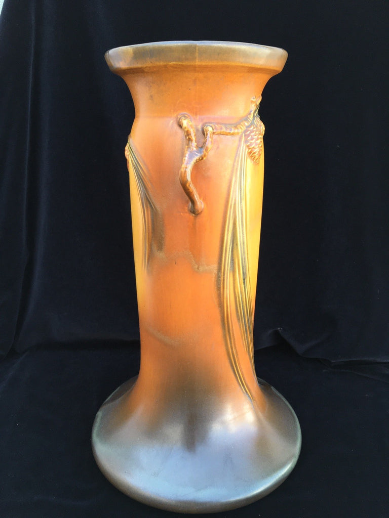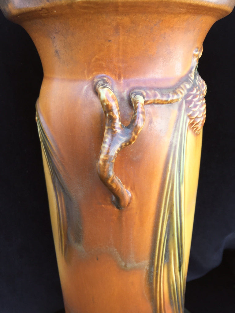 Roseville Pottery, c. 1936, Pine Cone Pedestal 632-8 fall season colors
