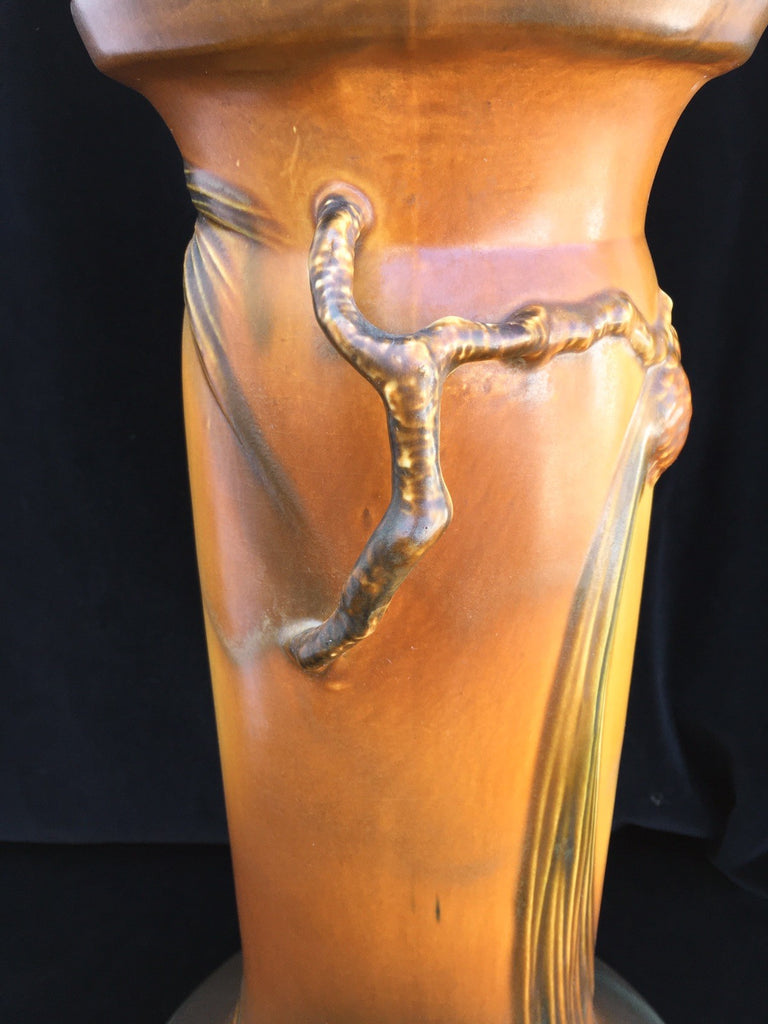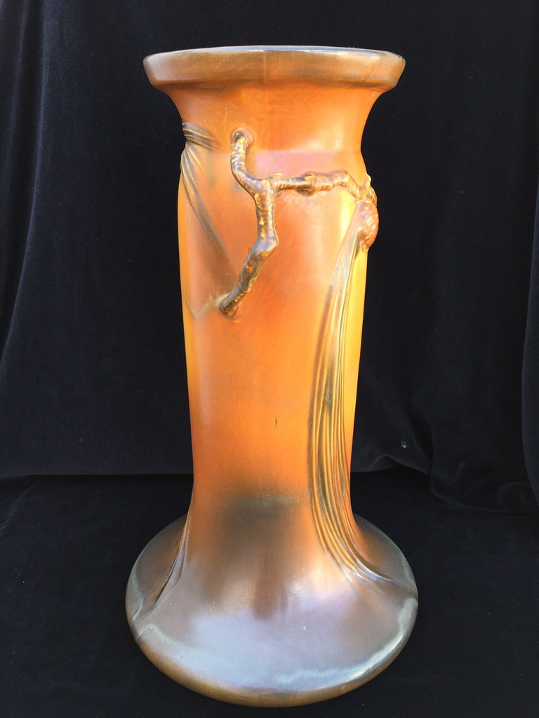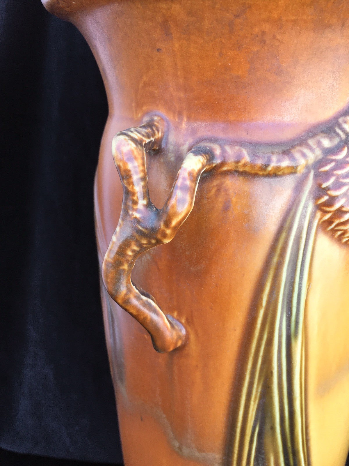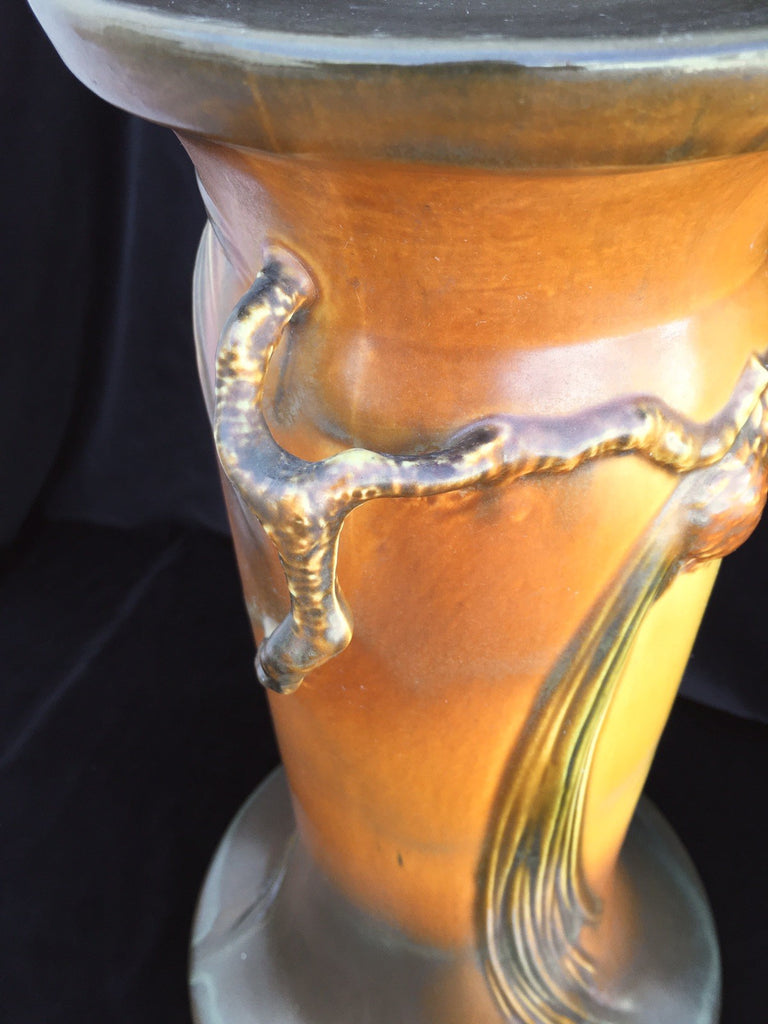 Roseville Pottery, c. 1936, Pine Cone Pedestal 632-8 fall season colors