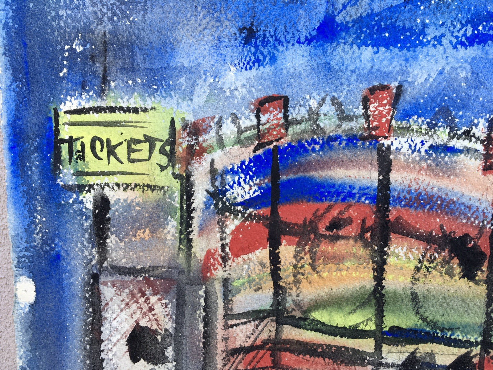 Space-Age Watercolor Of The Moon Rocket Tilt-A-Whirl Carnival Ride
